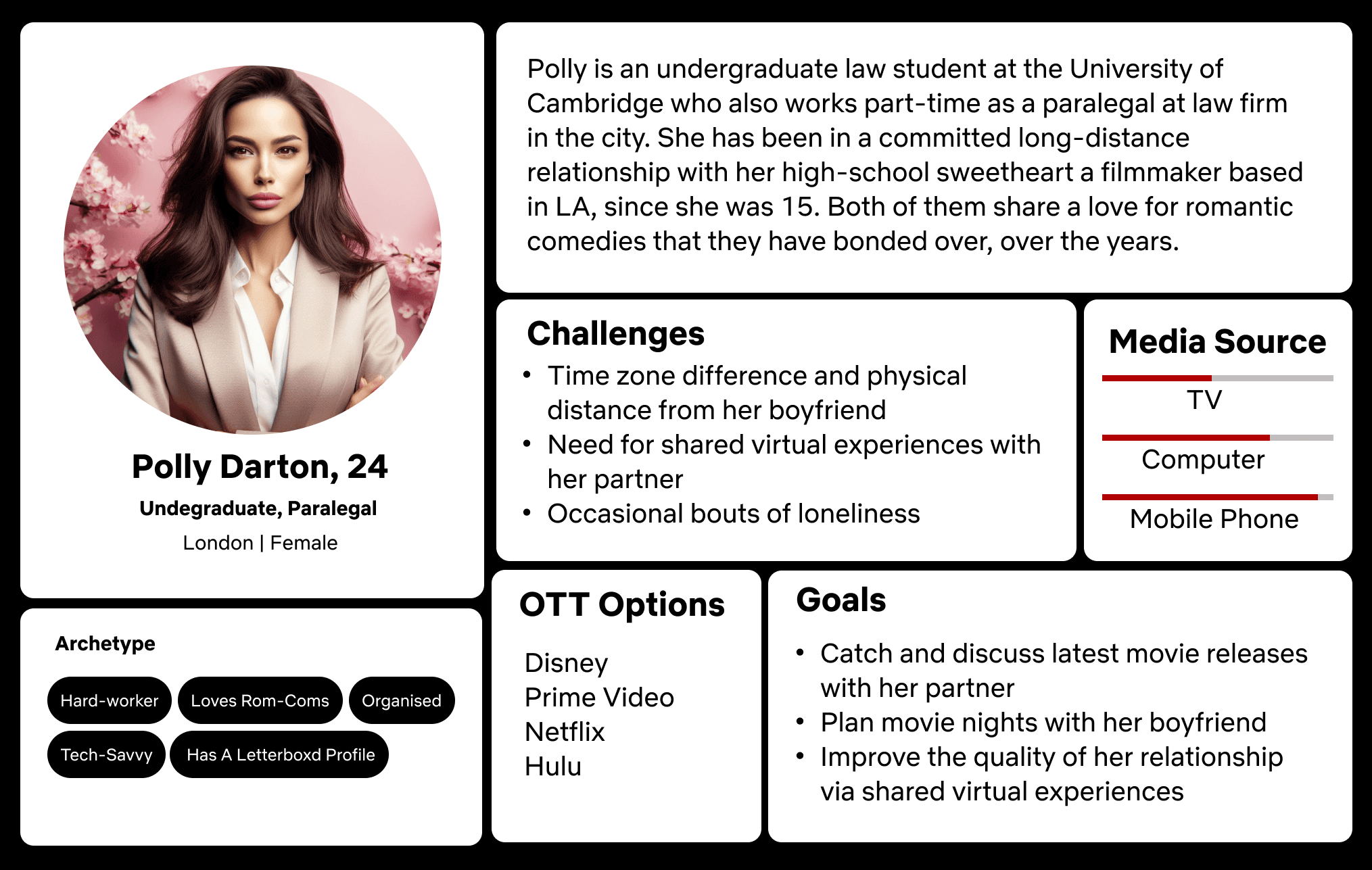 Strengths: At the time of this analysis, Netflix has the largest user base of all OTT providers globally. That audience is served via a user-friendly interface, a diverse content library and a recommendation algorithm that ensures user personalisation.